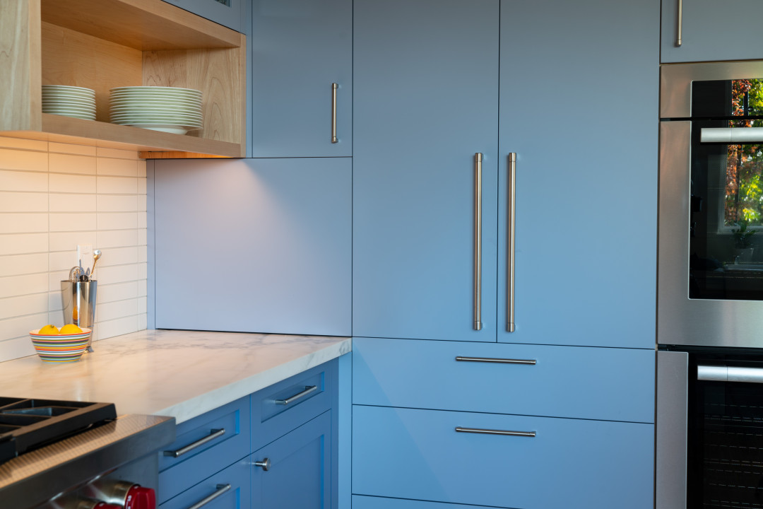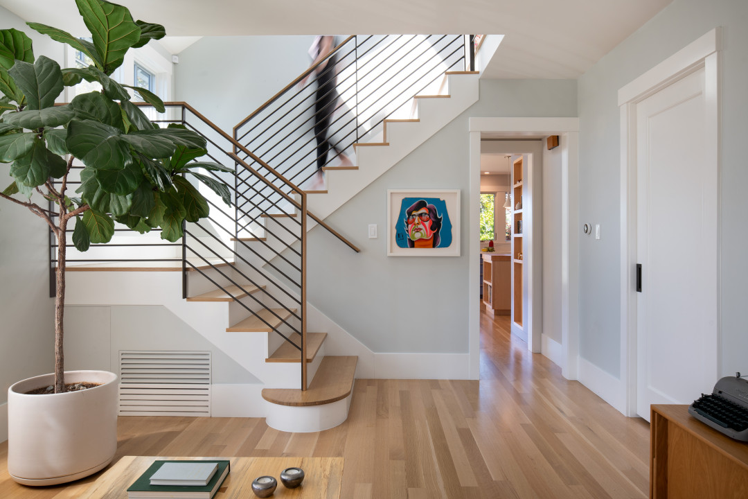 Interior remodel of a 2-story residence built in 1918 with a small, 10 s/f bump-out kitchen addition. The interior was completely gutted, and all the interior walls were relocated. A new stair was built to access the second floor. The headlight of the original 2nd floor was only about 6', so maximizing without increasing the overall building height was the highest priority and biggest challenge. All the mechanical, electrical, and plumbing systems were completely replaced.